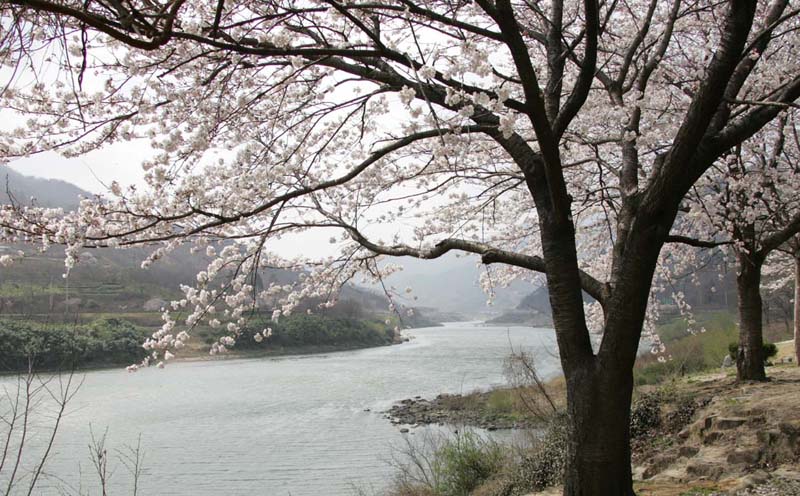 구례 섬진강변 벚꽃 꽃망울 터뜨려